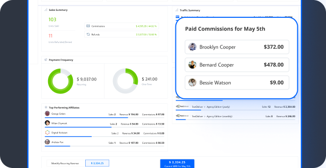 PayKickstart isn’t just checkout software—it’s a marketplace. Manage affiliates with trust scoring, instant payouts, and real-time dashboards, while vendors get a built-in growth channel baked right into the platform.
