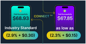 With Connect, you can cut that instantly by up to 30% — with rates as low as 2.3% + $0.15 per transaction.